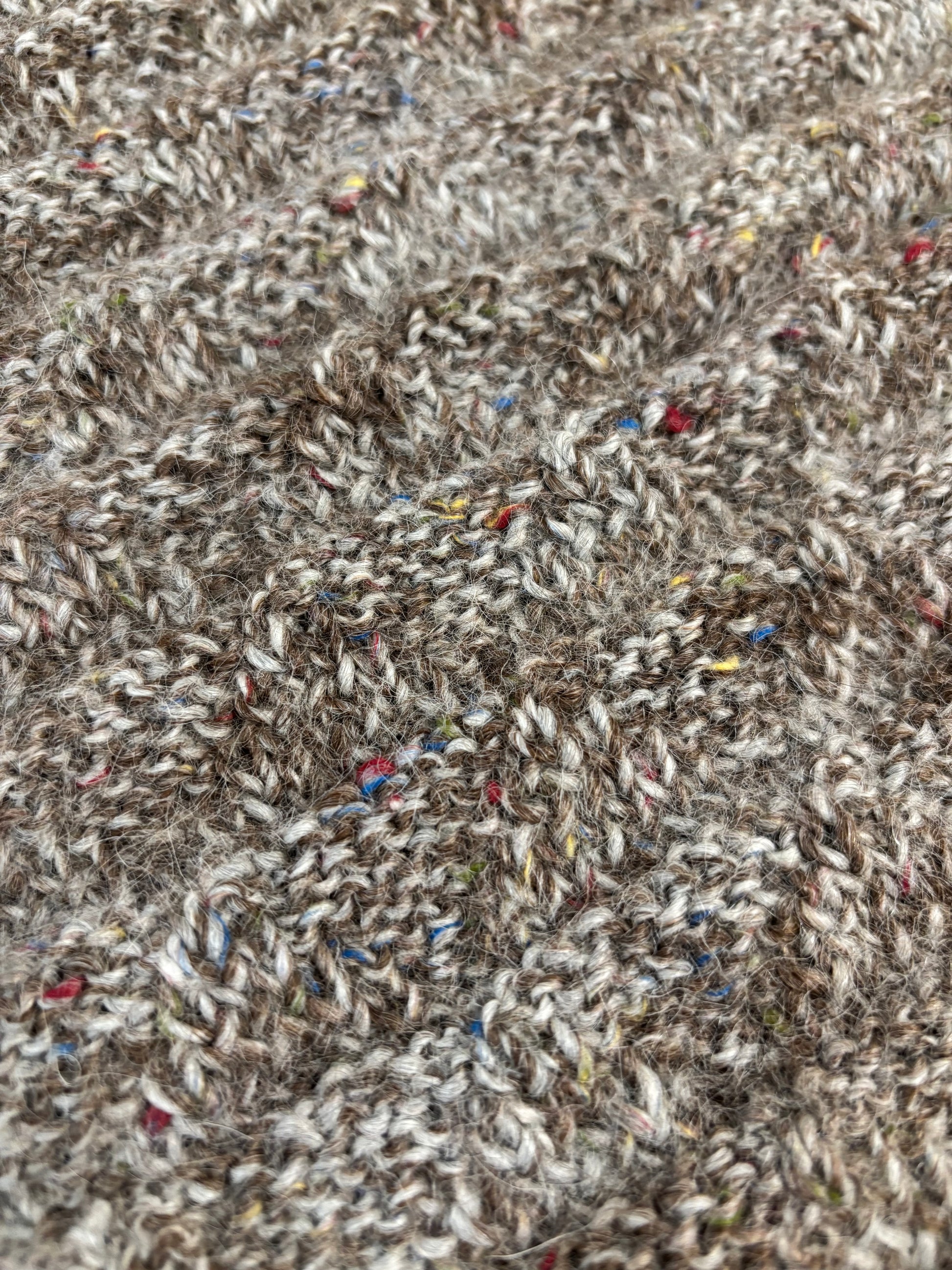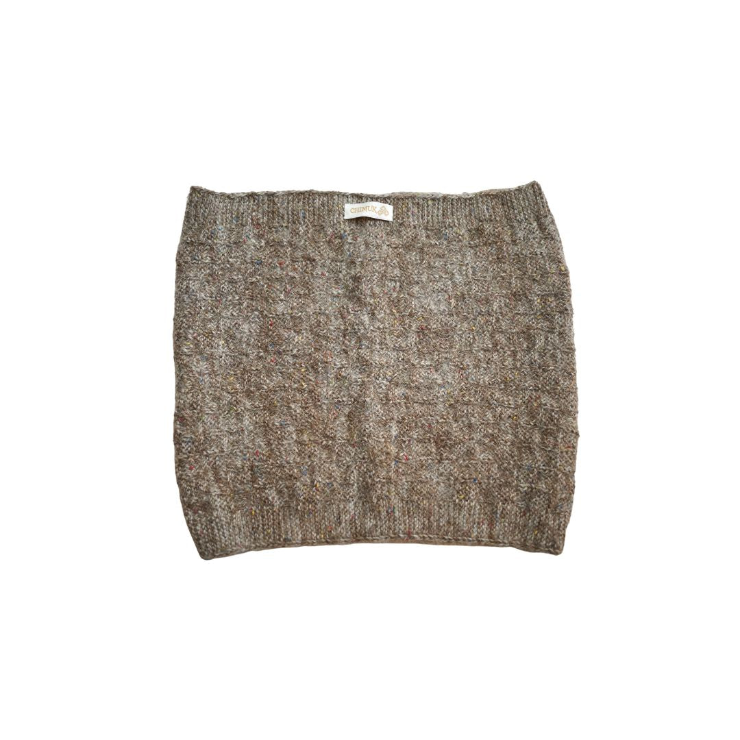 Designed in a rich brown base with subtle multicolor flecks, it adds a touch of uniqueness and charm to any outfit. Measuring 35 x 39 cm, this special-size design offers a snug and cozy fit, perfect for keeping warm while maintaining effortless style. Lightweight yet insulating, this versatile piece is an ideal companion for chilly days, blending traditional craftsmanship with modern sophistication.