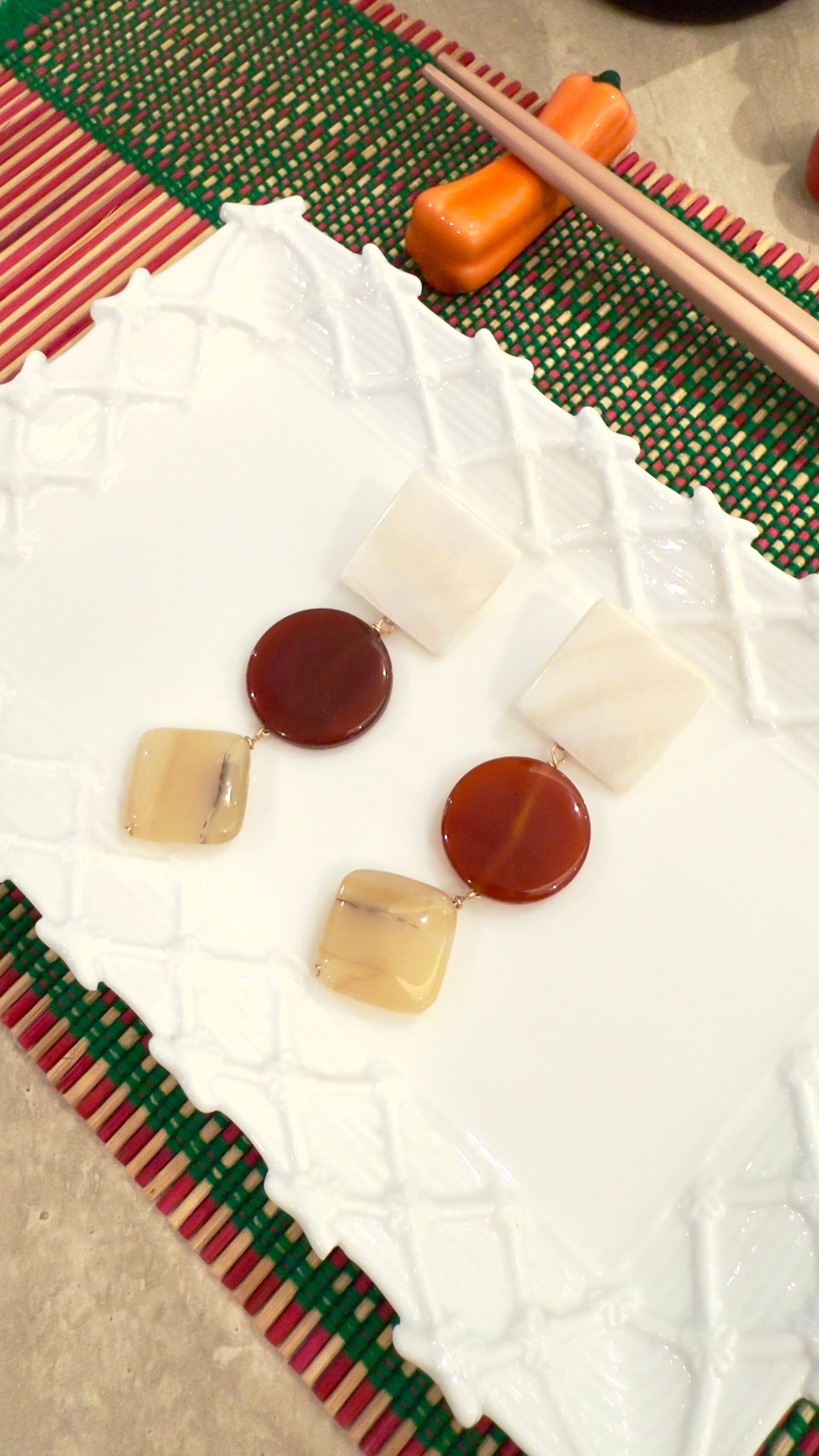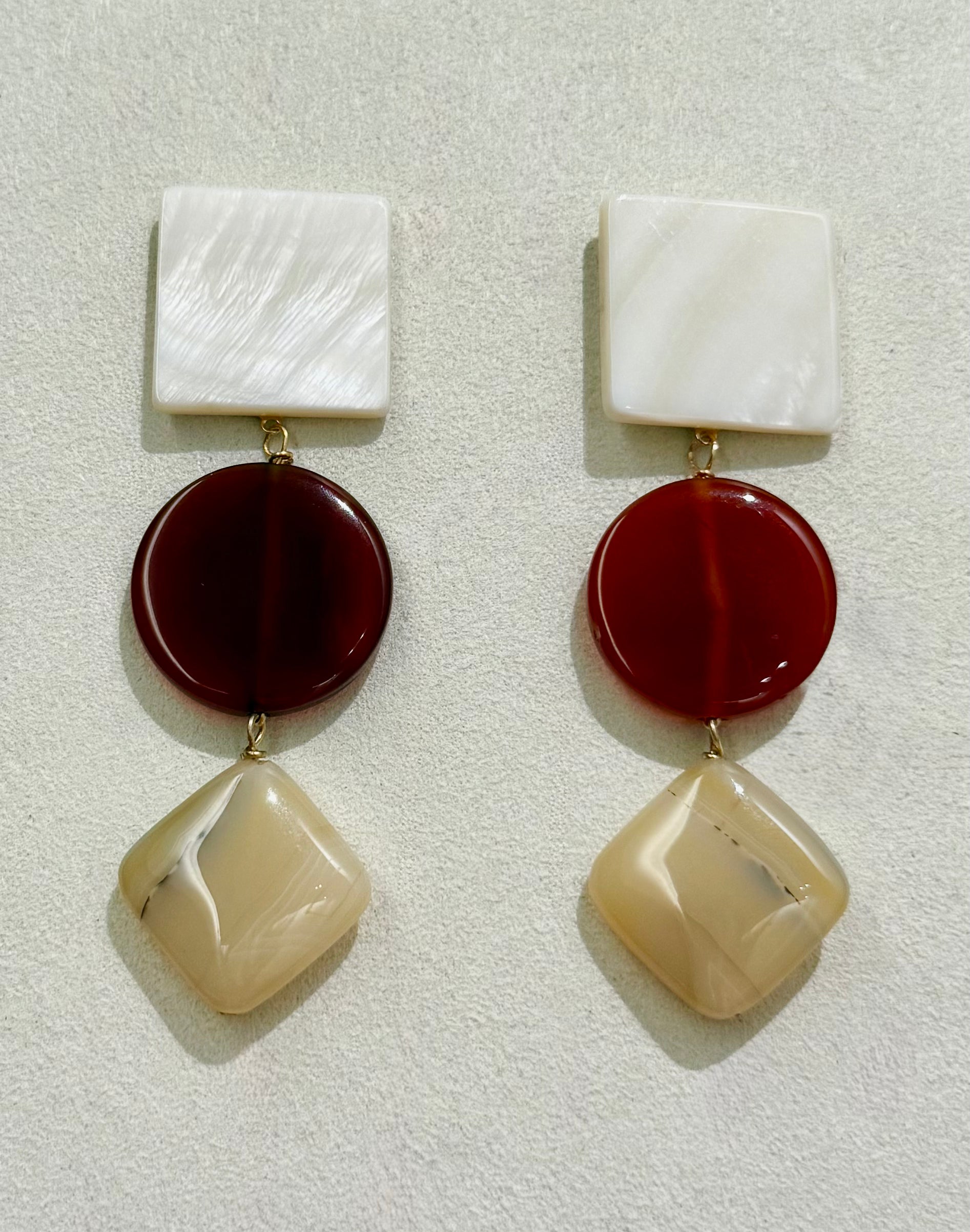 Materials: Agate, Onyx, White Mother-of-Pearl, Silver earring posts