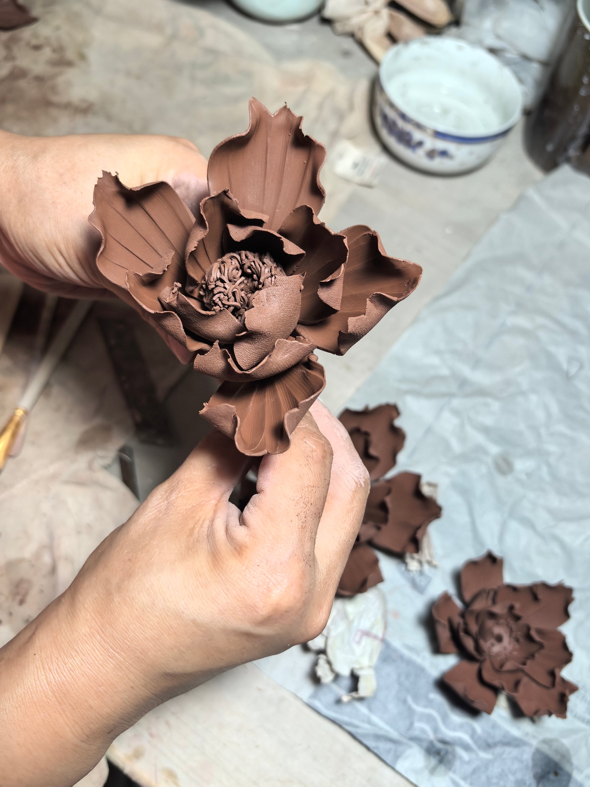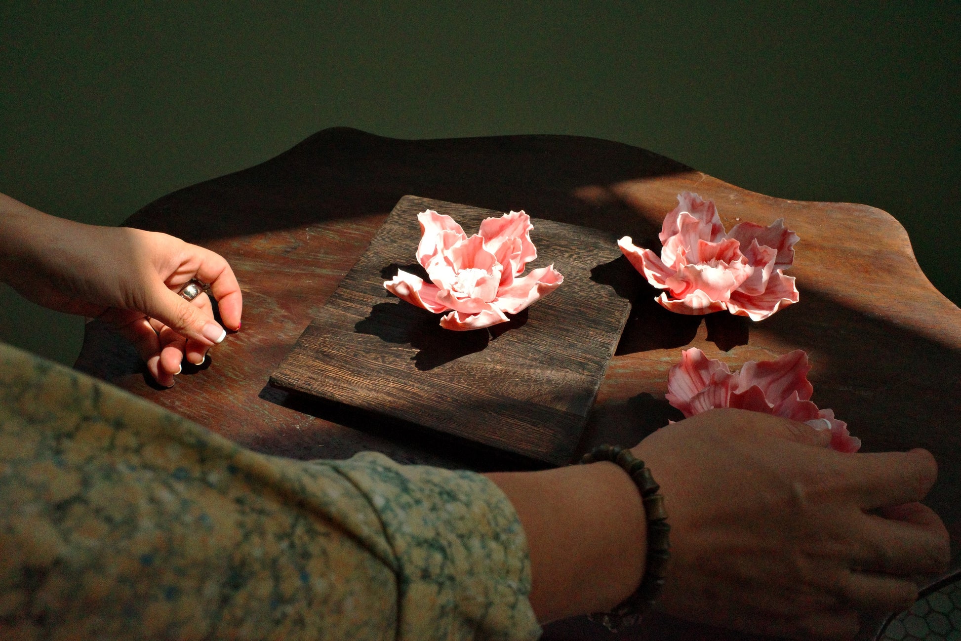 "Blooming Prosperity" Hand-Pinched Peony Porcelain Flower Set