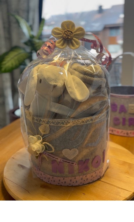 Each basket is lovingly handmade from soft, premium felt and adorned with delicate decorative ribbons, glittering decorations, and personalized details—because every little touch matters. ✨