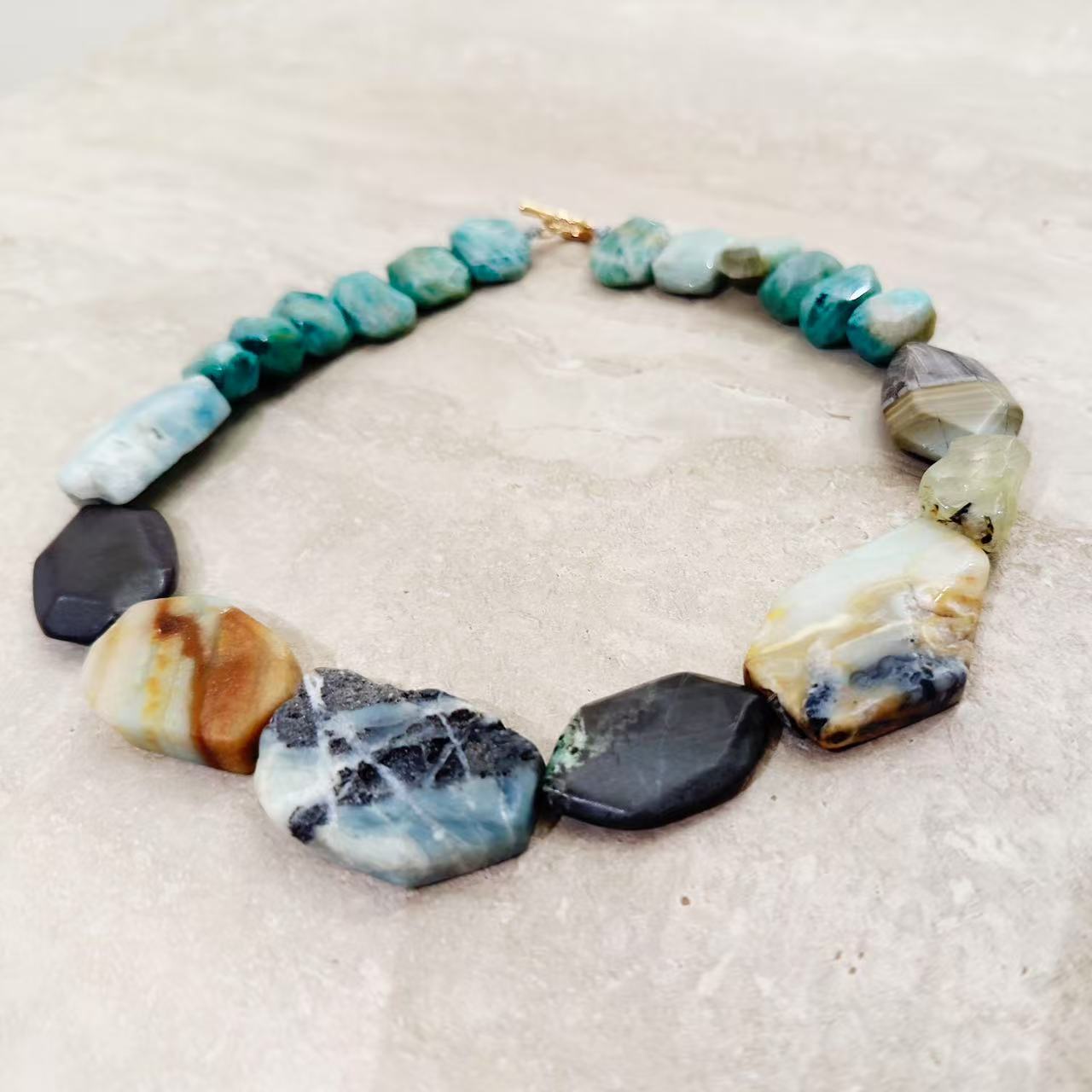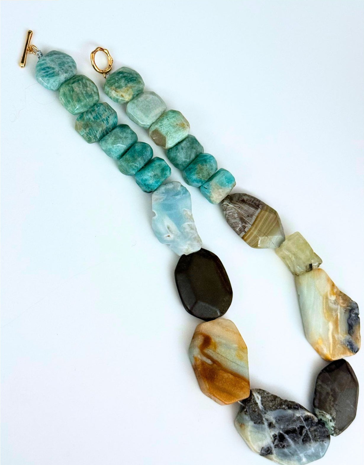 Materials: Raw amazonite, Polished amazonite, Agate