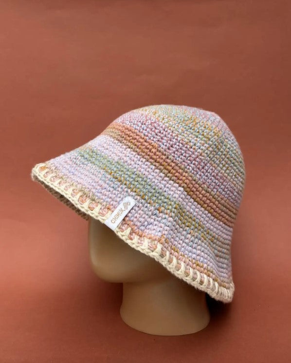 Our stylish and eco-friendly Kid Bucket Hat, crafted with care from premium Tangüis cotton sourced from Peru. Features a dynamic mix of vibrant pink, orange, and purple in eye-catching stripes, perfect for adding a pop of color to any outfit for kids.