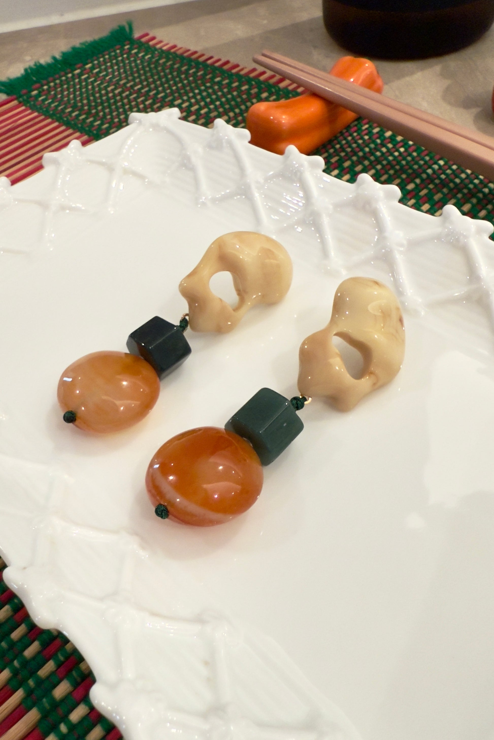 Materials: Agate, Onyx, Resin, Silver earring posts