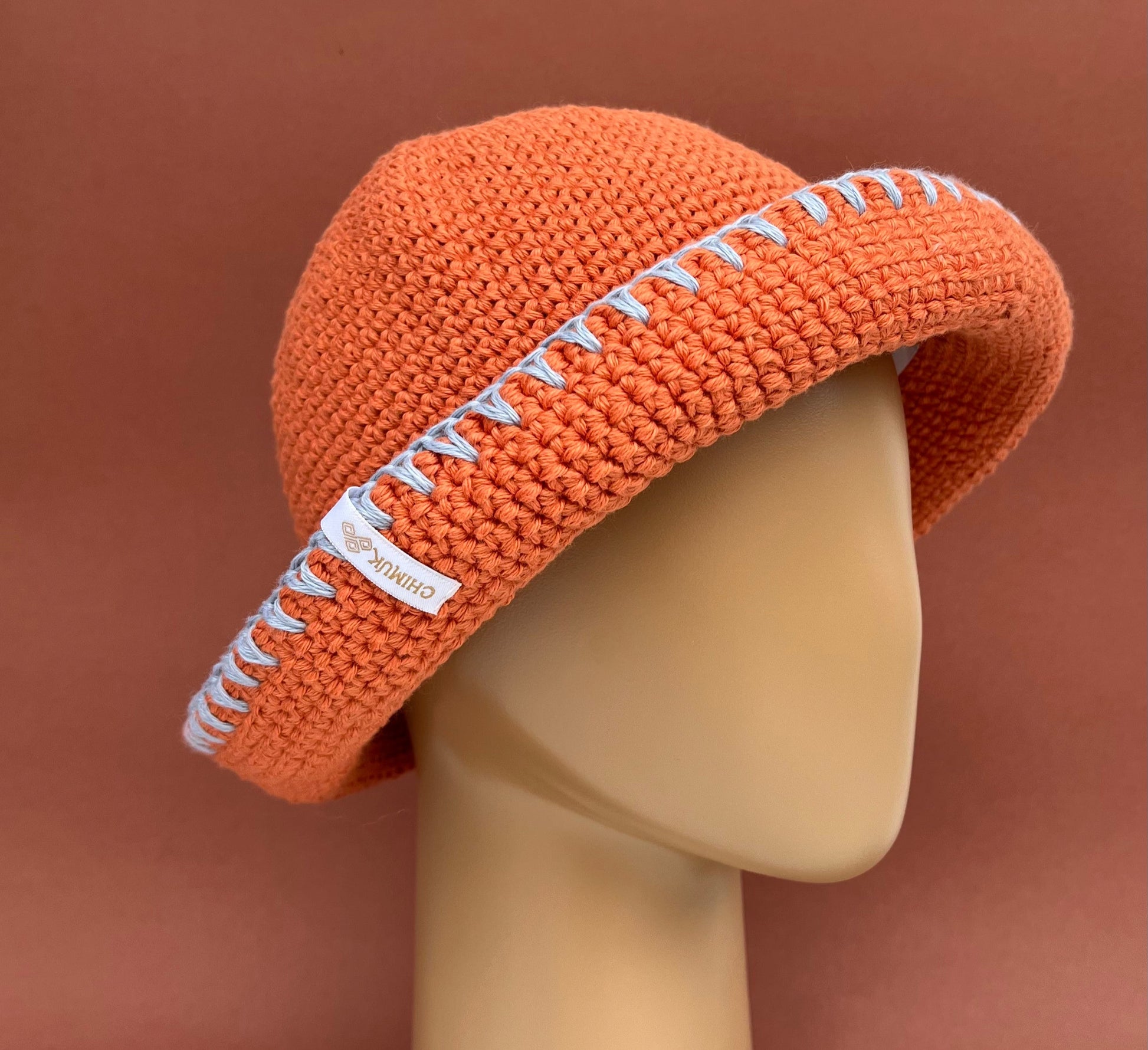 This vibrant orange adult bucket hat is handmade from 100% Tangüis cotton, known for its exceptional softness, breathability, and resilience.